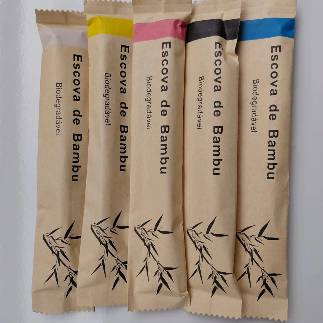 Kit Infantil 5 Escovas de Dentes de Bambu Biodegradável